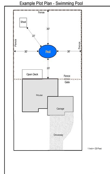 3. Site plans showing location of pool and distance from property lines and house